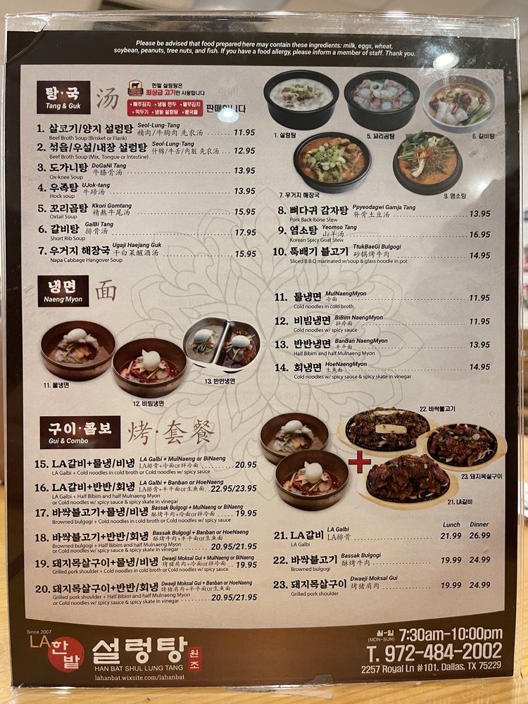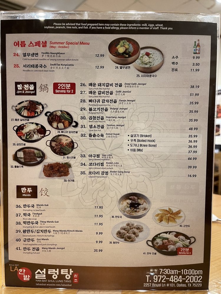 Welcome to LA Hanbat, a hidden gem nestled in Dallas, Texas, specializing in authentic Korean cuisine. Their menu is a delightful journey through traditional Korean flavors, with standout dishes like the seolleongtang, a light and heartwarming soup perfect for any cold day, enriched with generous portions of meat and glass noodles. Diners rave about the mandoo, a sizable delight that’s sure to satisfy your cravings.
